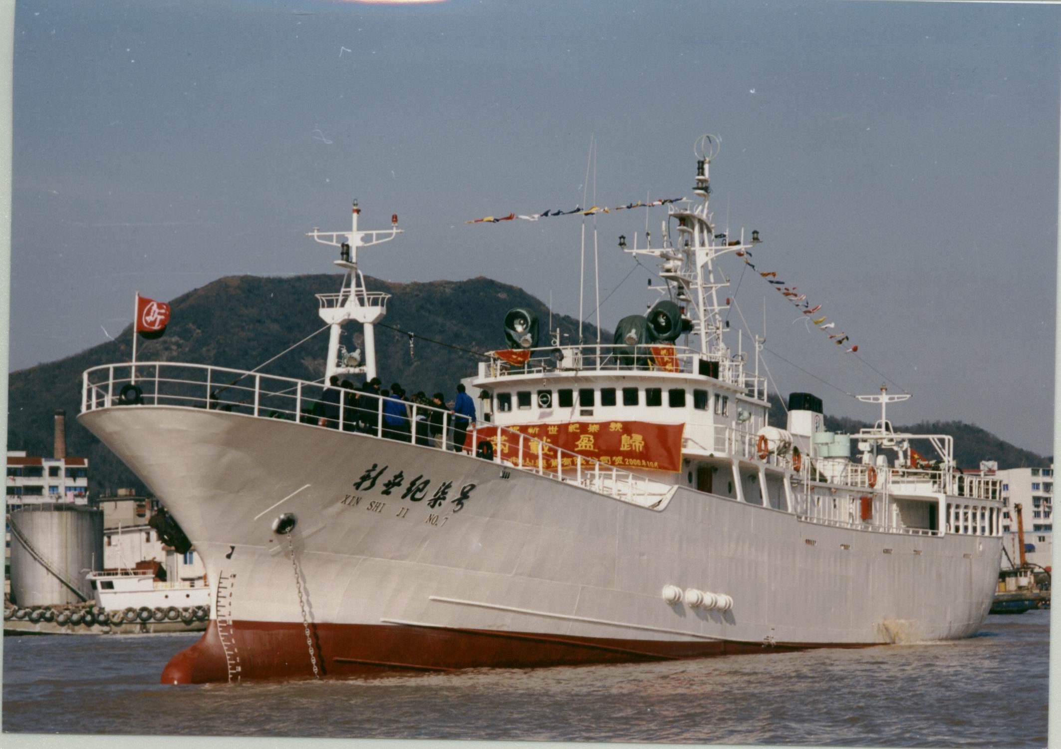 船舶名稱:超低溫金槍魚(yú)釣船“新世紀(jì)七號(hào)” 主機(jī)功率:1200HP 總噸位:900 主尺度:56.4×8.7×3.75M 航速:12.5kn 入級(jí):中國(guó)漁檢