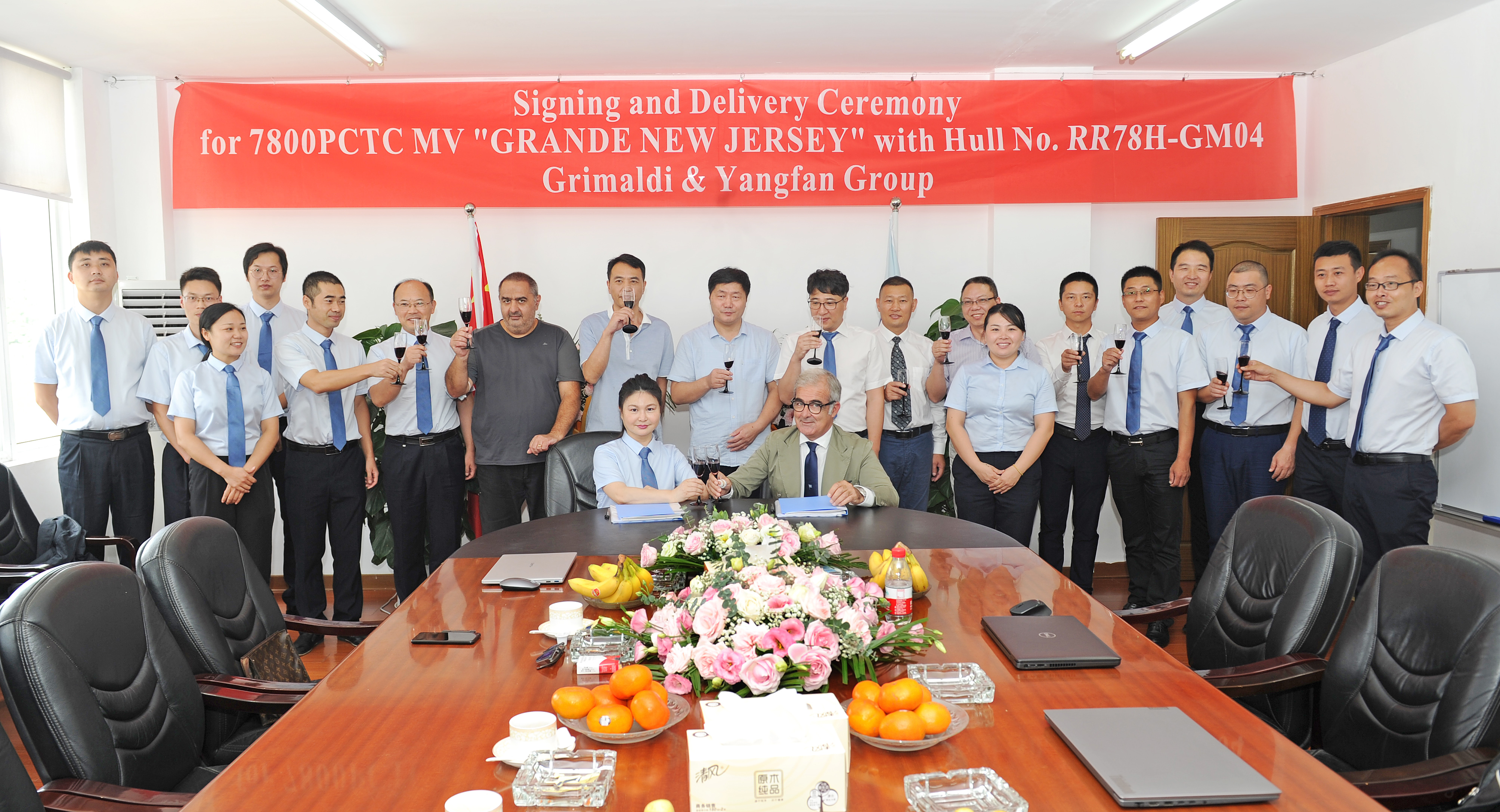 2020年9月2日,揚(yáng)帆集團(tuán)股份有限公司下屬浙江東海岸船業(yè)有限公司承建的7800車(chē)位汽車(chē)運(yùn)輸船(PCTC)系列船“GRANDE NEW JERSEY”號(hào)(GM04)正式簽字交付。該船從出塢到一次試航成功碼頭周期不到80天。船東對(duì)該船的各項(xiàng)性能指標(biāo)非常滿意。