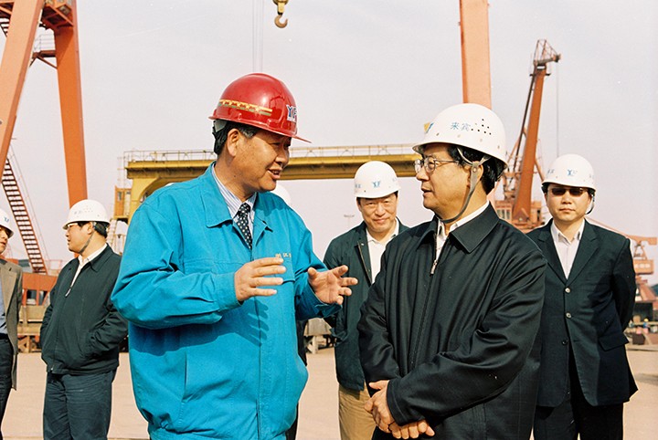 2007年4月12日,浙江省委書記趙洪祝(前右一),對(duì)揚(yáng)帆集團(tuán)的跨越發(fā)展成績(jī)表示肯定,并指出,作為舟山臨港工業(yè)的一個(gè)亮點(diǎn),揚(yáng)帆集團(tuán)應(yīng)該繼續(xù)保持目前的發(fā)展勢(shì)頭以及在國內(nèi)外市場(chǎng)的良好聲譽(yù)和信譽(yù)。