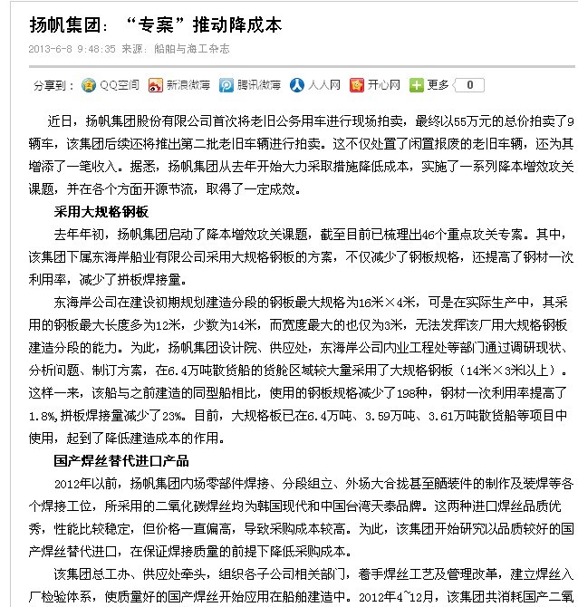船舶與海工:揚(yáng)帆集團(tuán):“專案”推動(dòng)降成本
