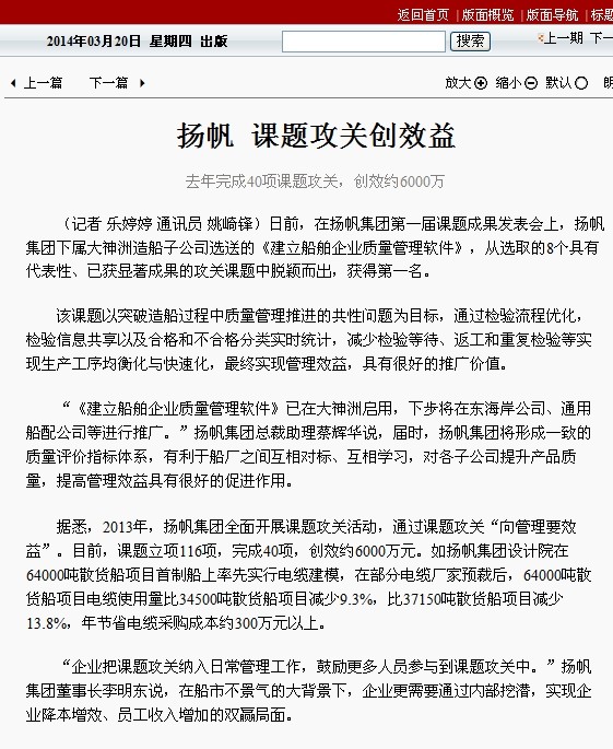 《今日普陀》2014年03月20日 揚(yáng)帆課題攻關(guān)創(chuàng)效益