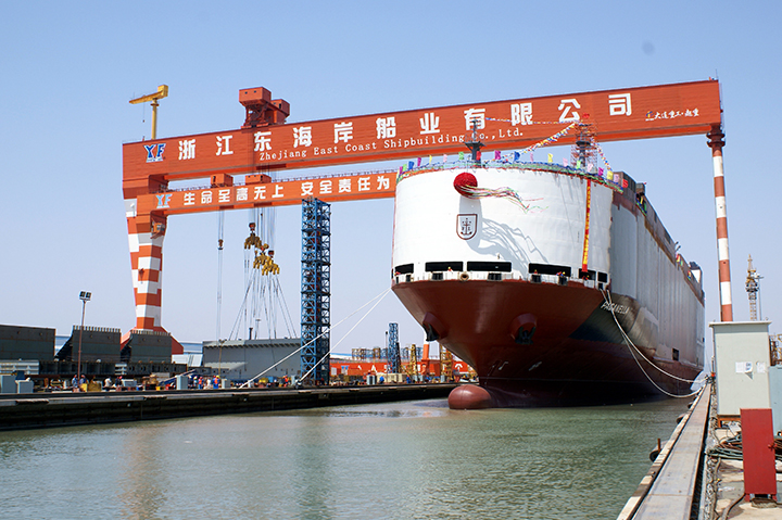 浙江東海岸船業(yè)有限公司位于浙江省舟山市螞蟻島,具有豐富的深水岸線資源和優(yōu)越的自然條件,總占地面積79萬平方米。船廠設(shè)施設(shè)備先進(jìn),布局合理,配備中型船塢、舾裝碼頭各一座,主要設(shè)備為600噸門座式吊機(jī)及二次涂裝處理設(shè)備等,具備20萬噸級(jí)以下各類船舶產(chǎn)品的建造能力,年造船能力100萬載重噸以上。